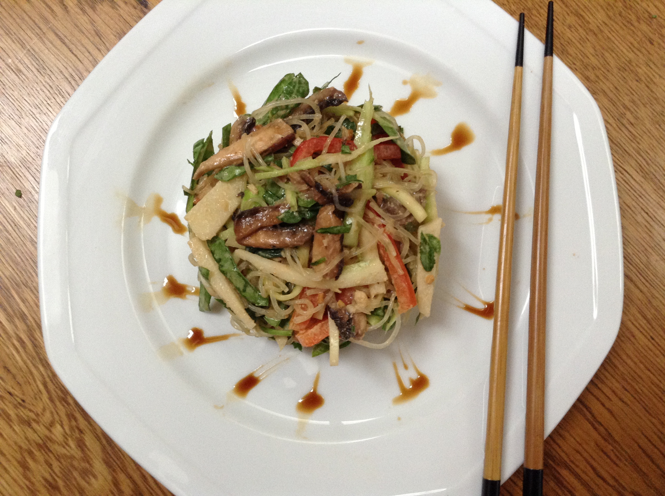 - Use a variety of vegetables and slice thin. I used, zucchini, mushrooms, peppers, jicama, spinach and broccoli stems.